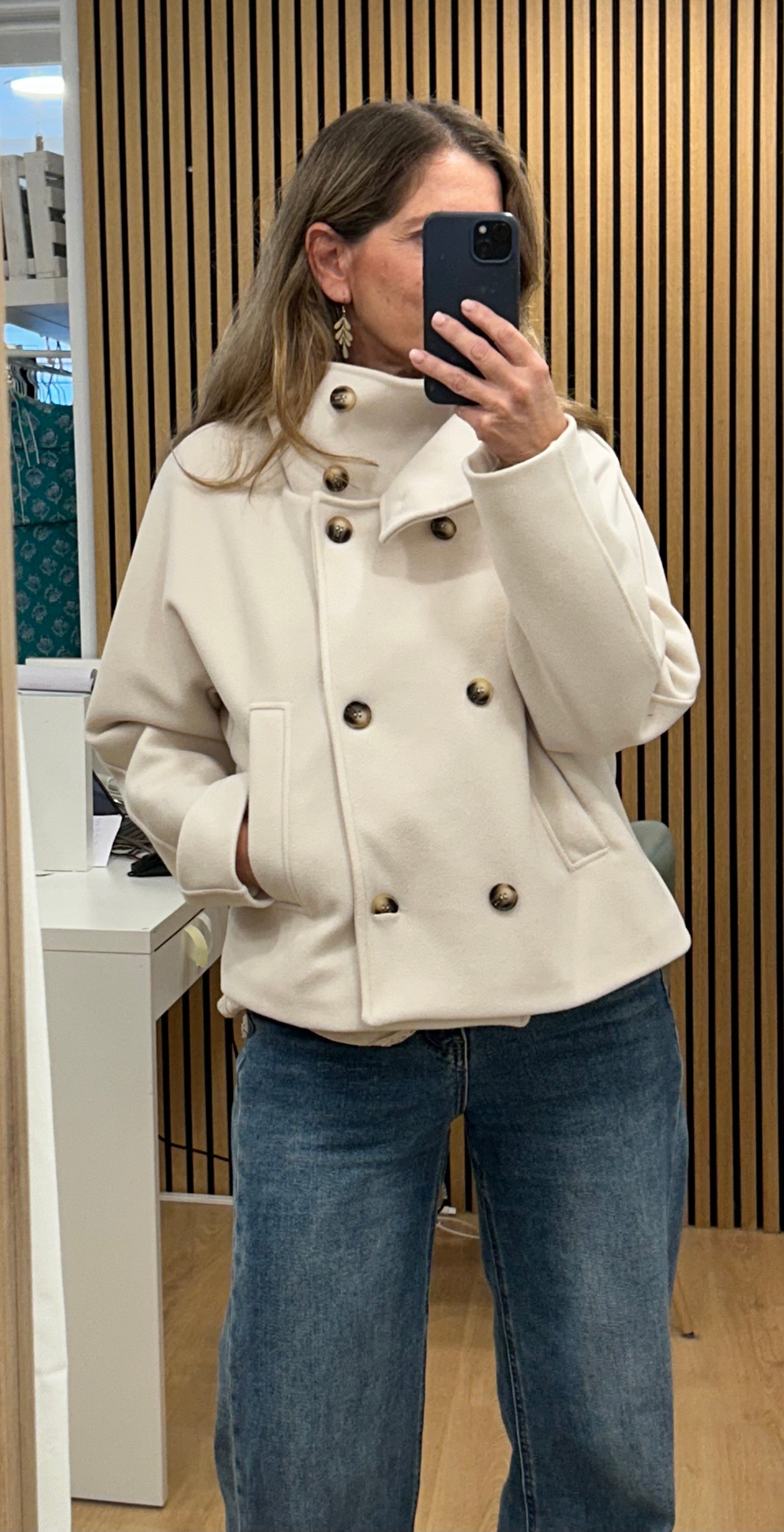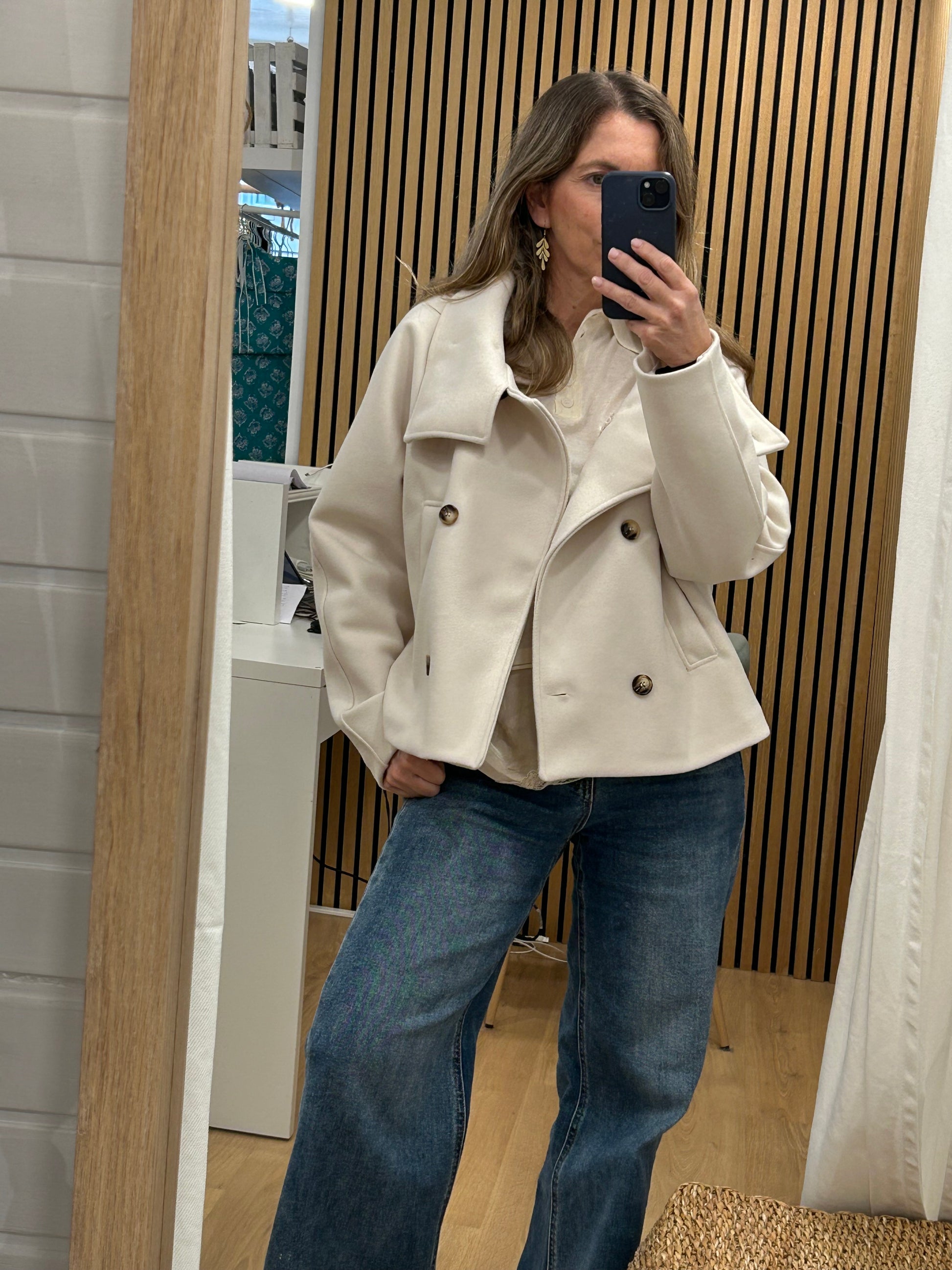 Cazadora con el cuello subido, súper tendencia esta temporada. El color Crudo es ideal para dar un toque de luz a tus outfits. talla única