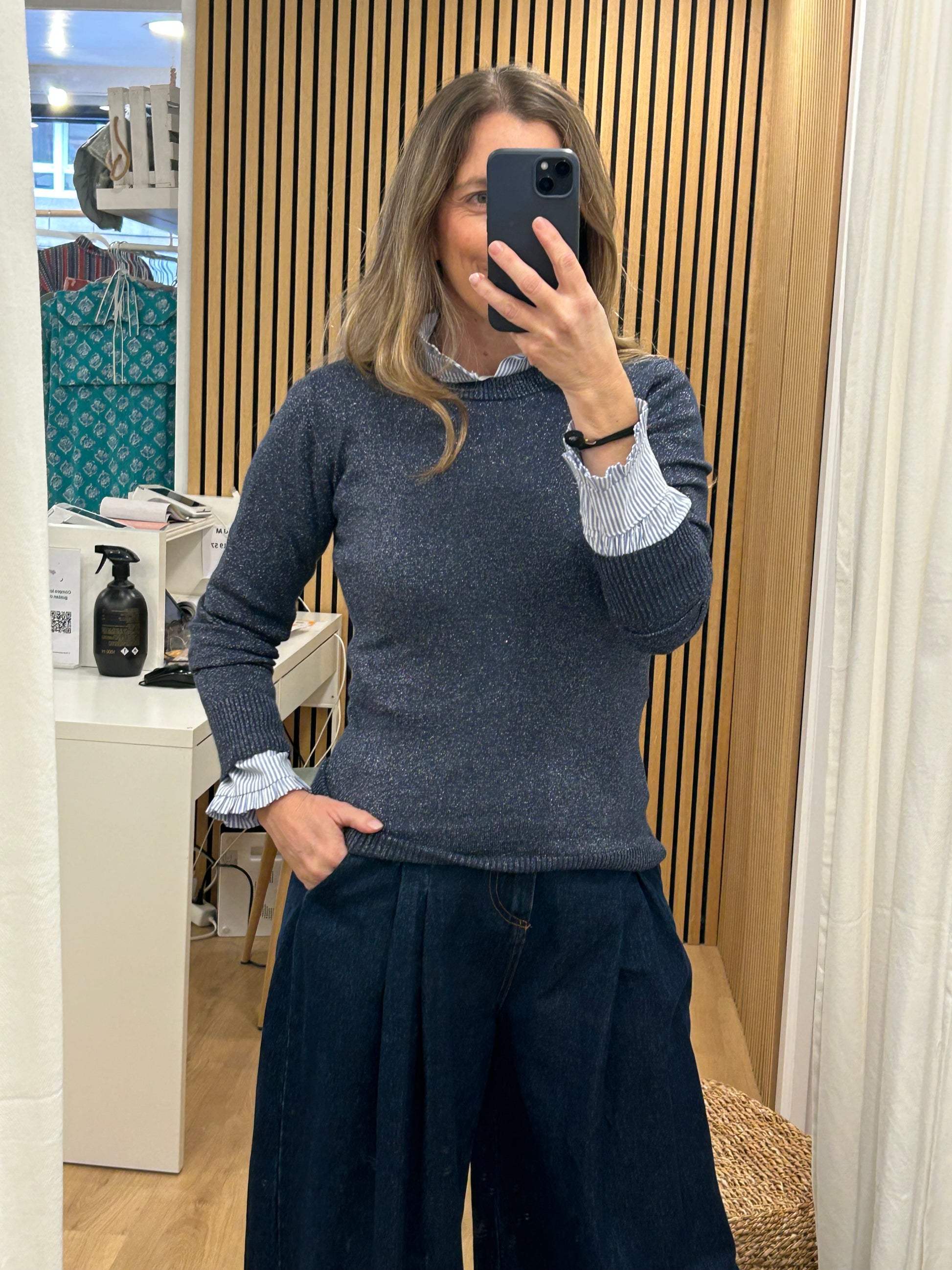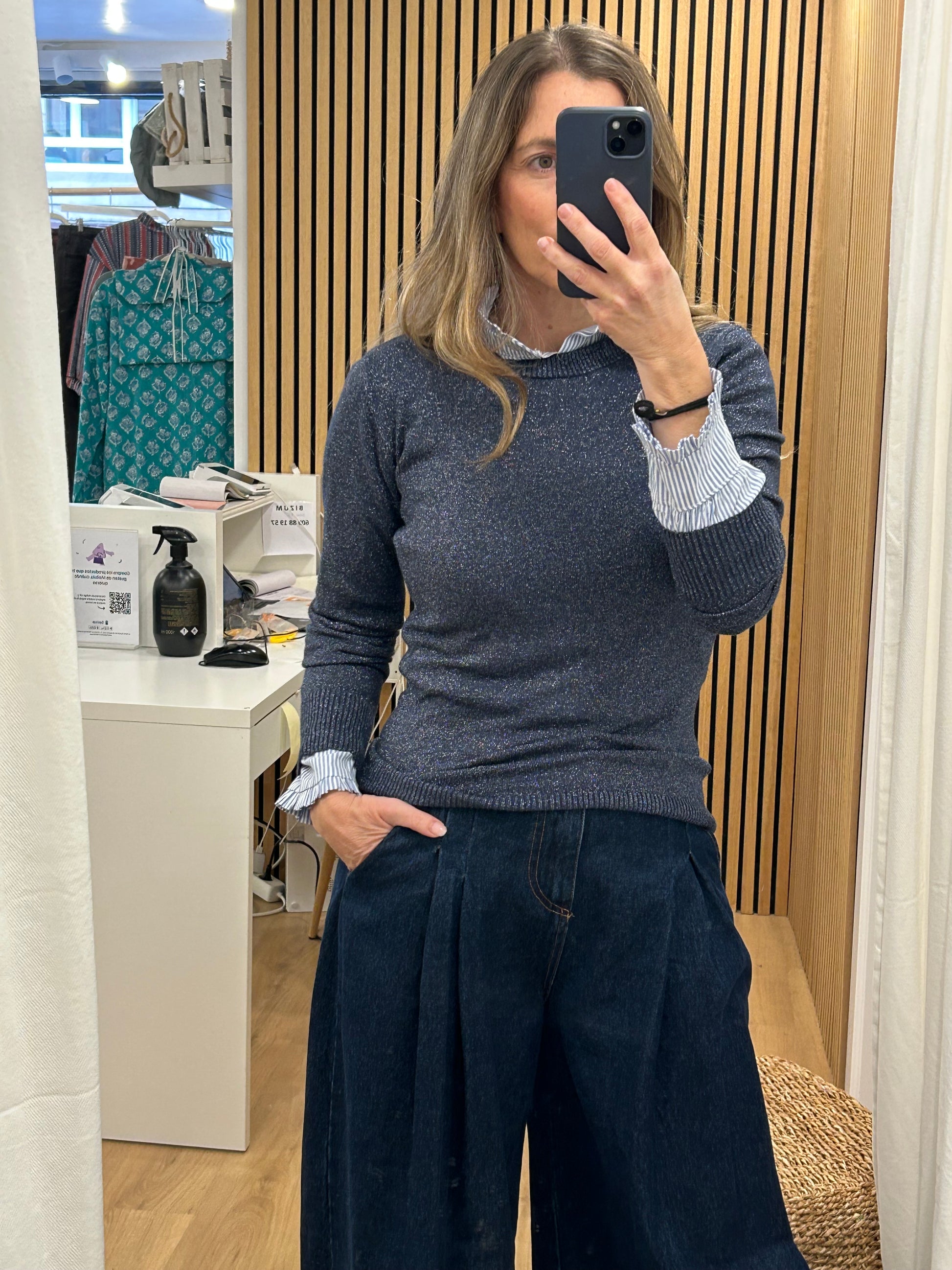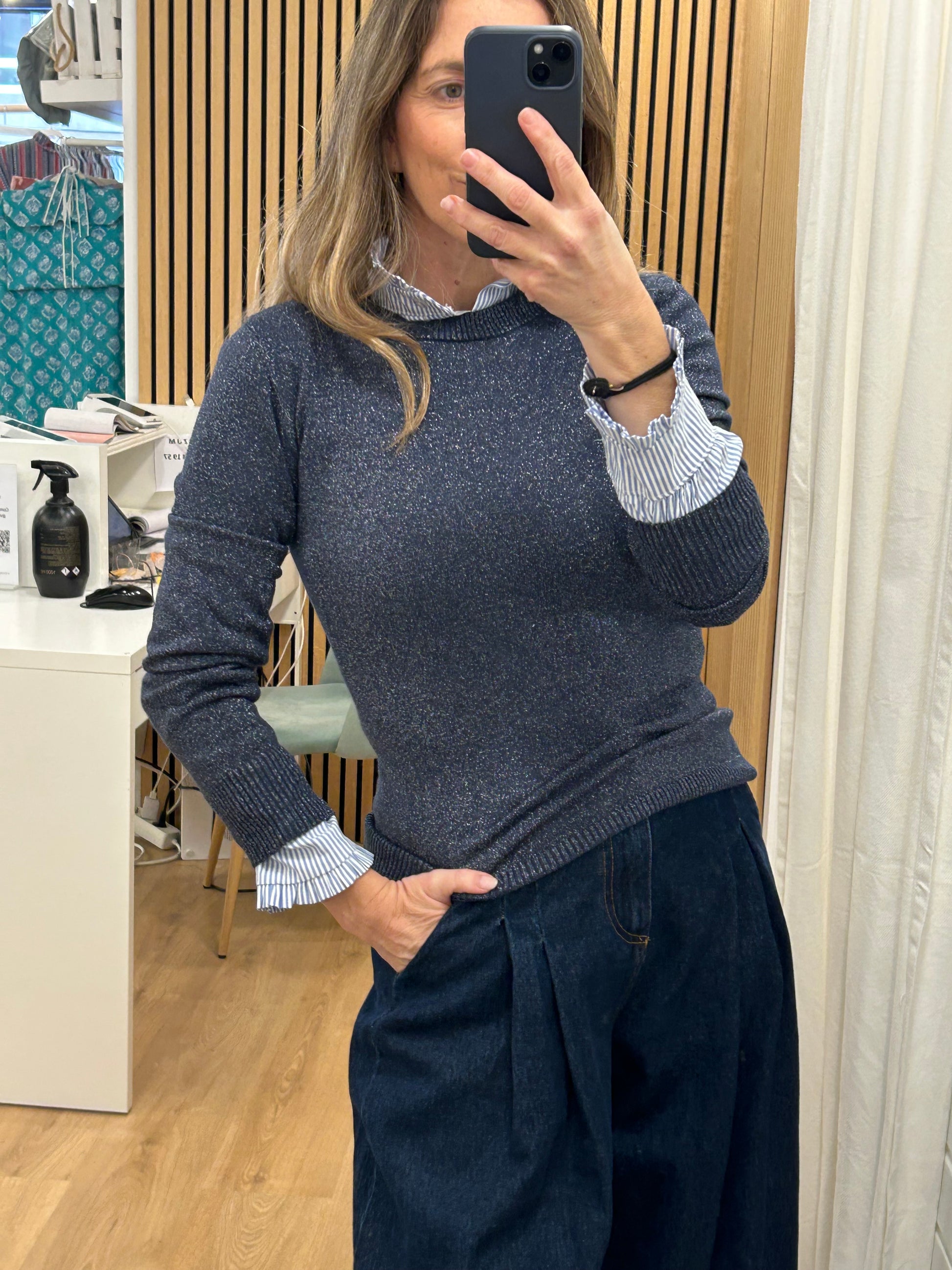 Jersey básico con tejido de lúrex super favorecedor. No pica nada en absoluto y da un brillo super especial. Talla única