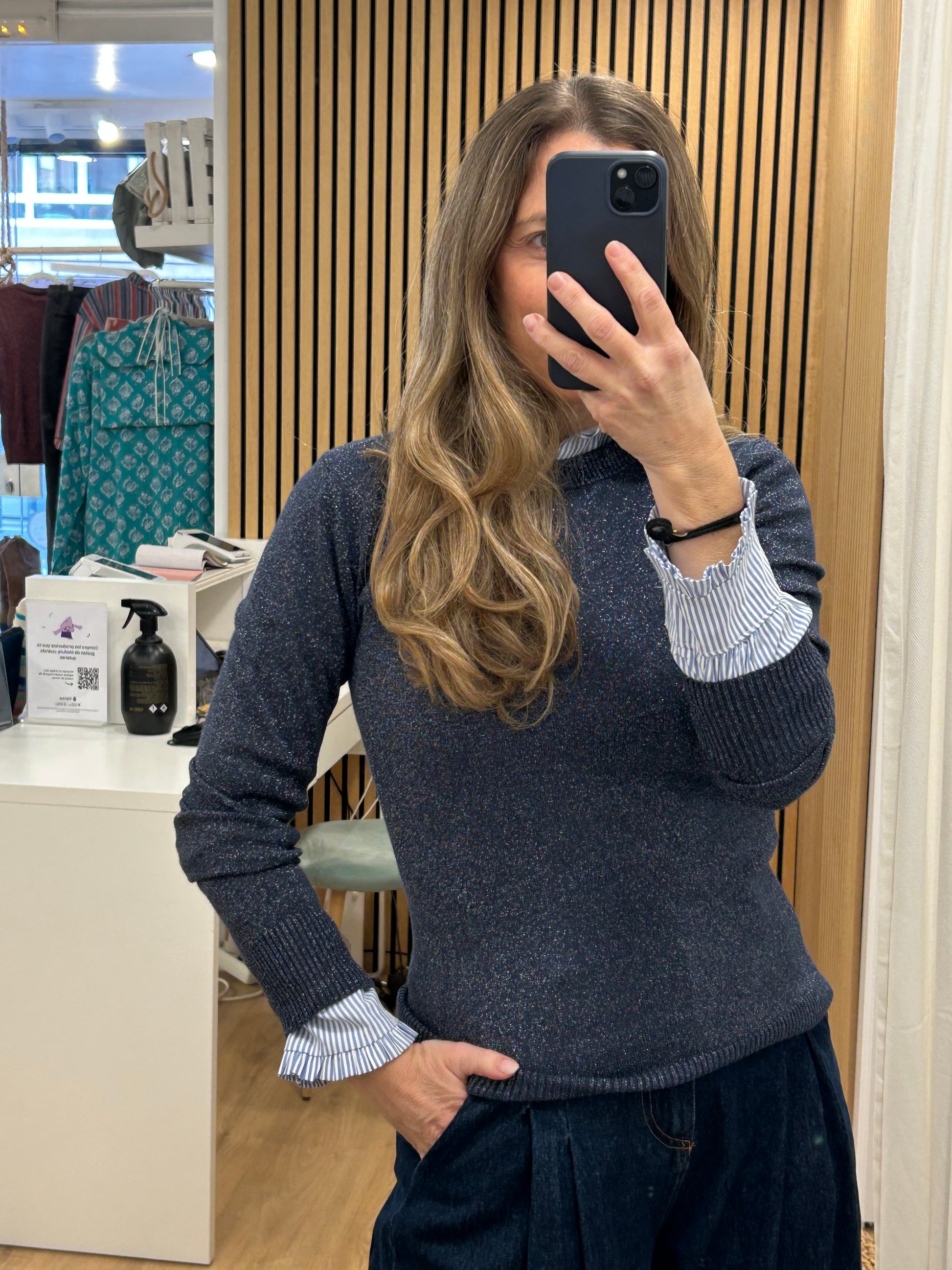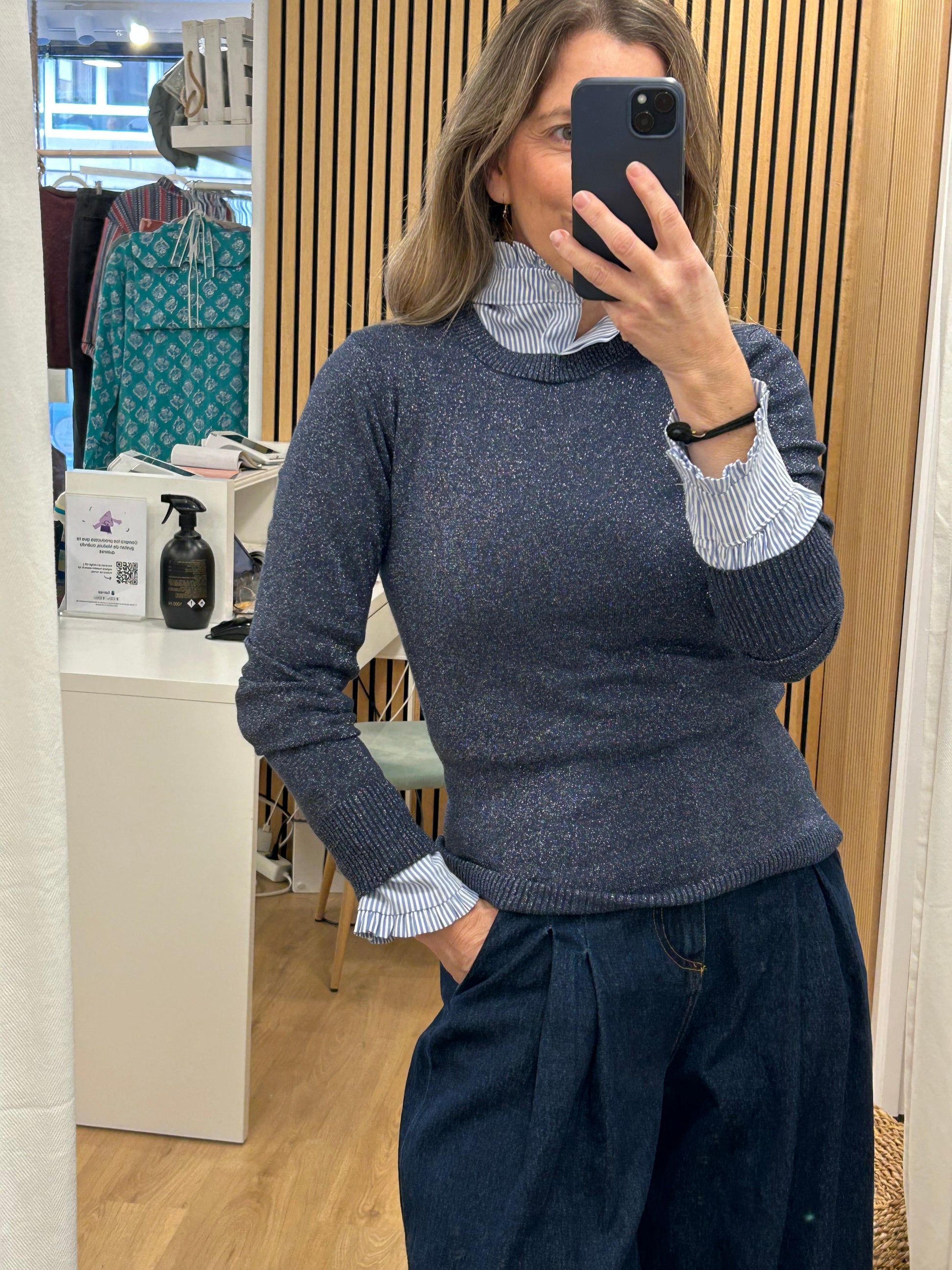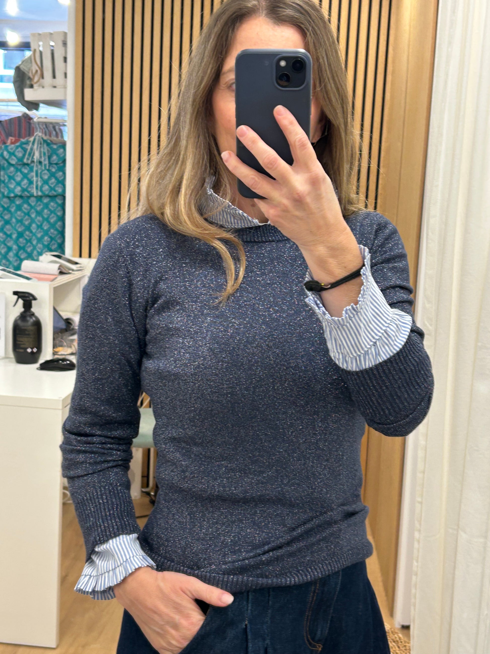 Jersey básico con tejido de lúrex super favorecedor. No pica nada en absoluto y da un brillo super especial. Talla única