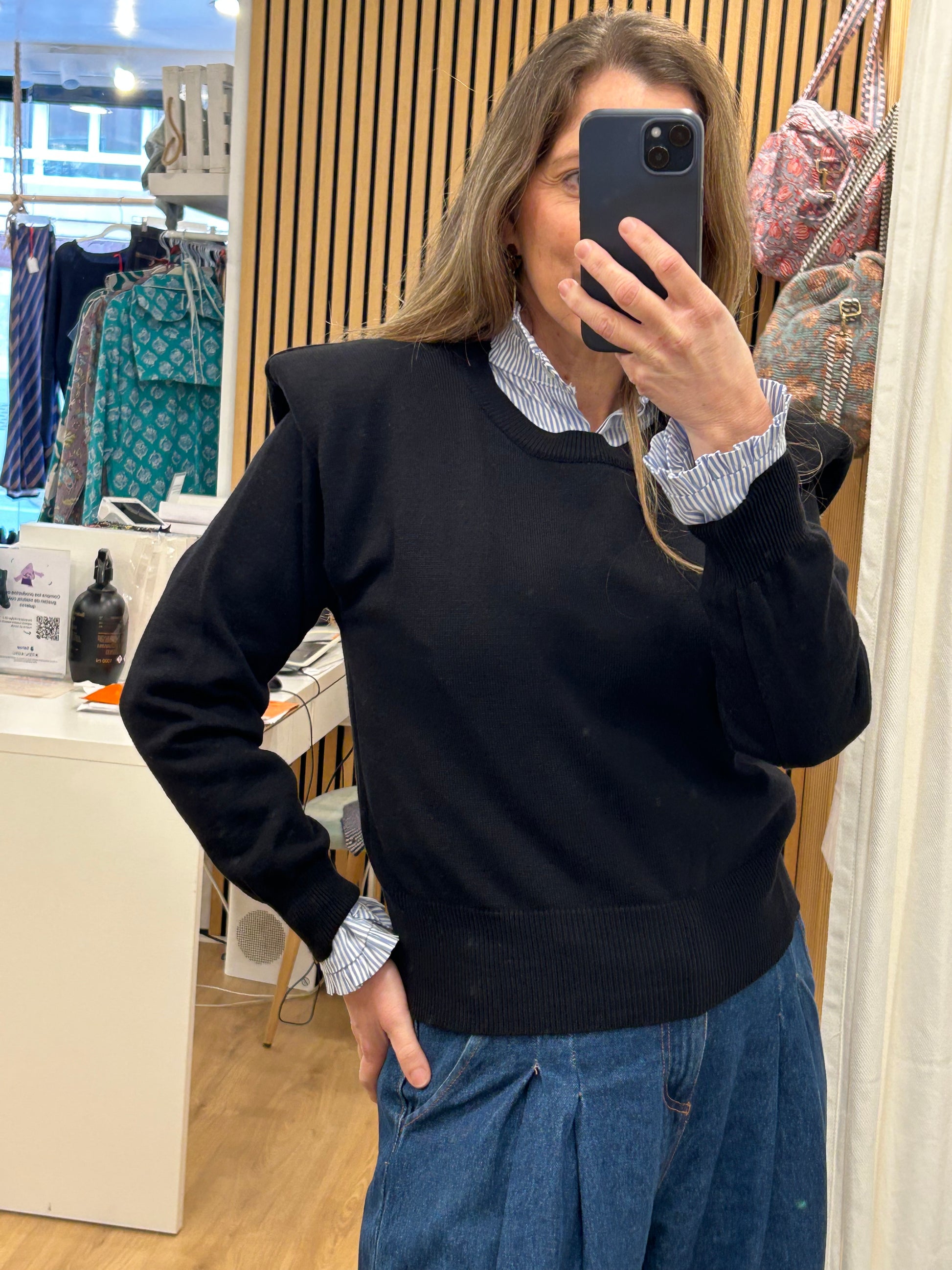 Jersey liso con detalle de hombreras. Las hombreras le dan un toque súper especial, son súper tendencia y consiguen que este jersey eleve cualquier look. Talla única