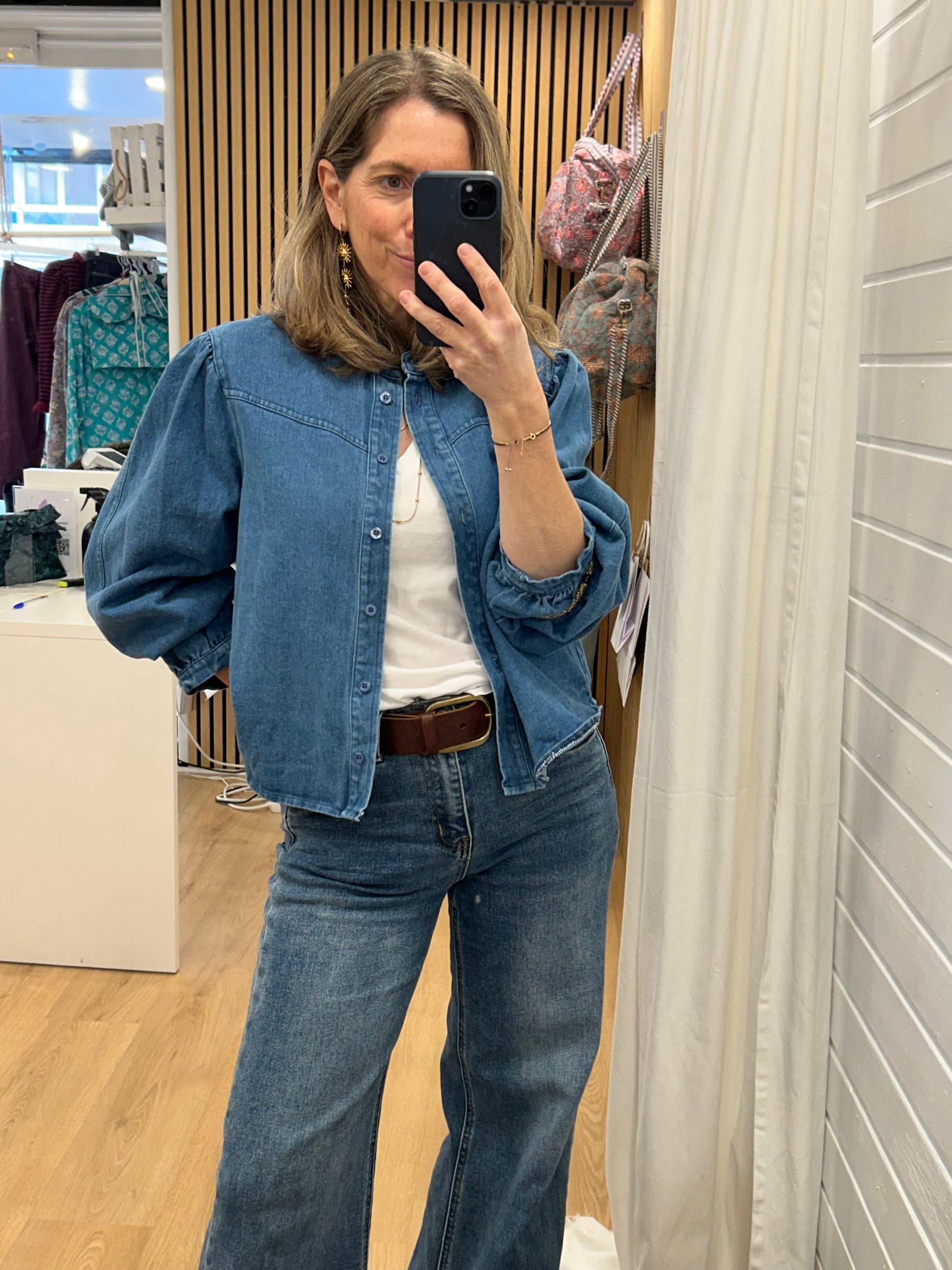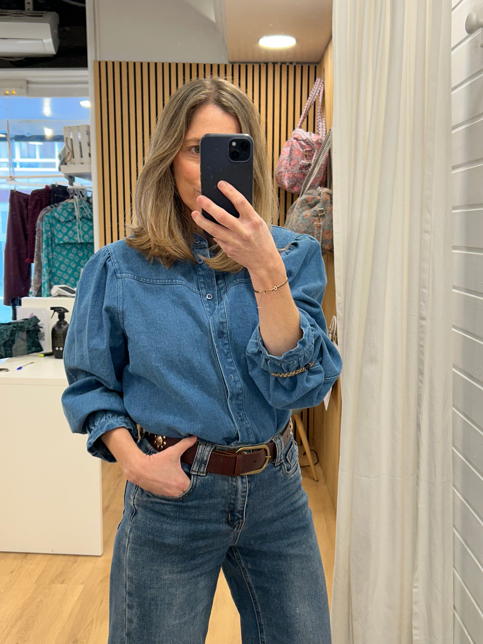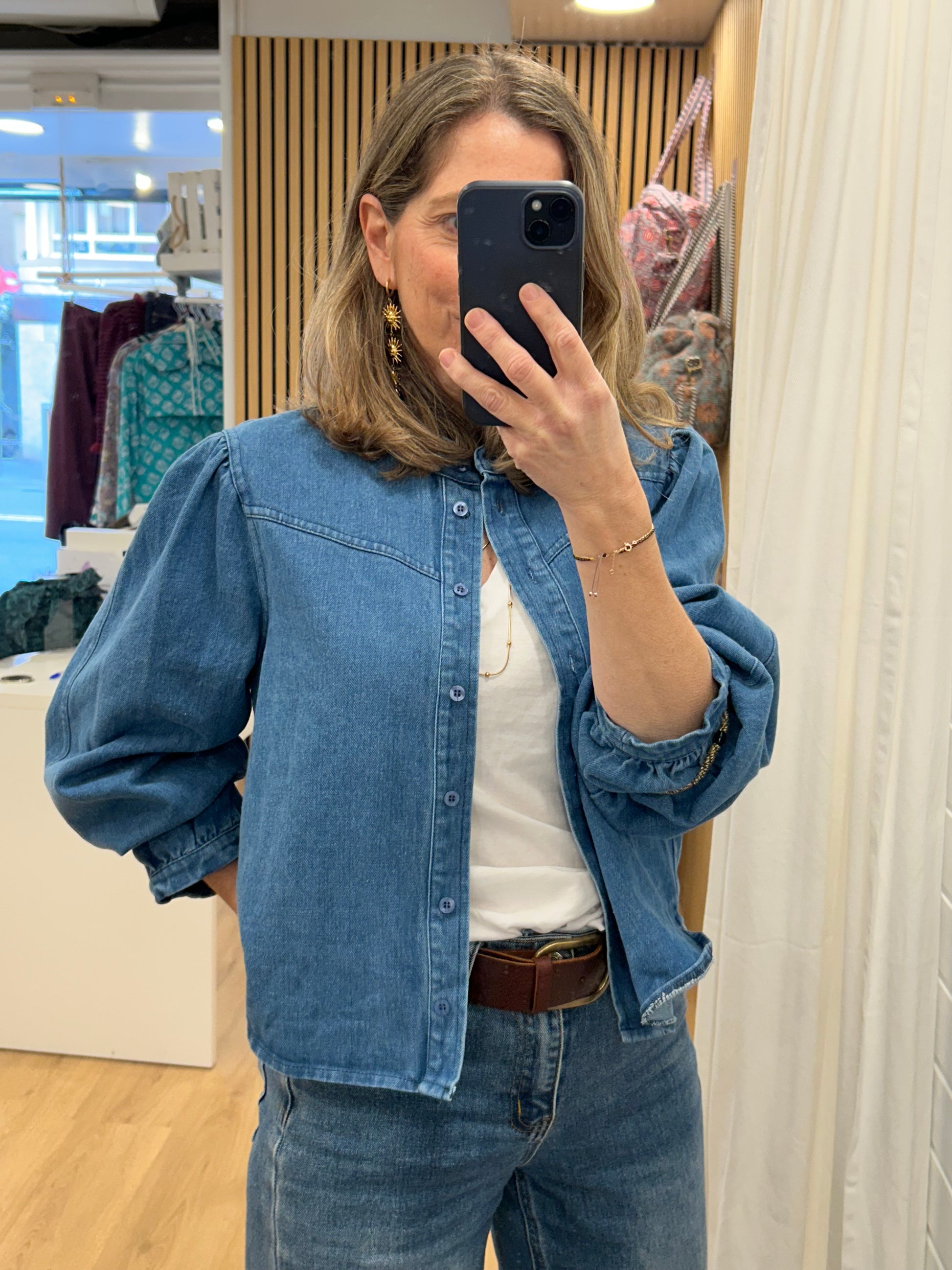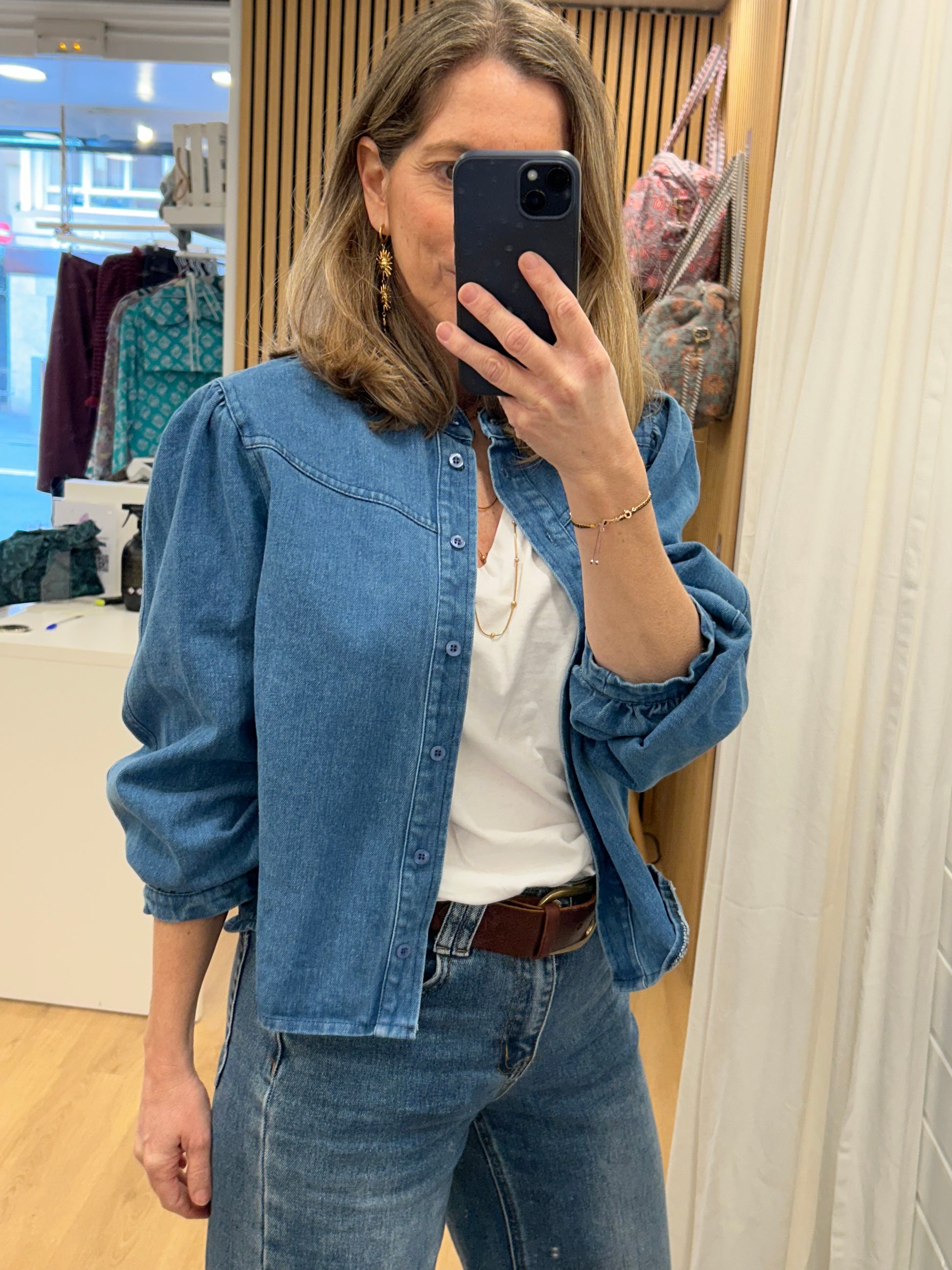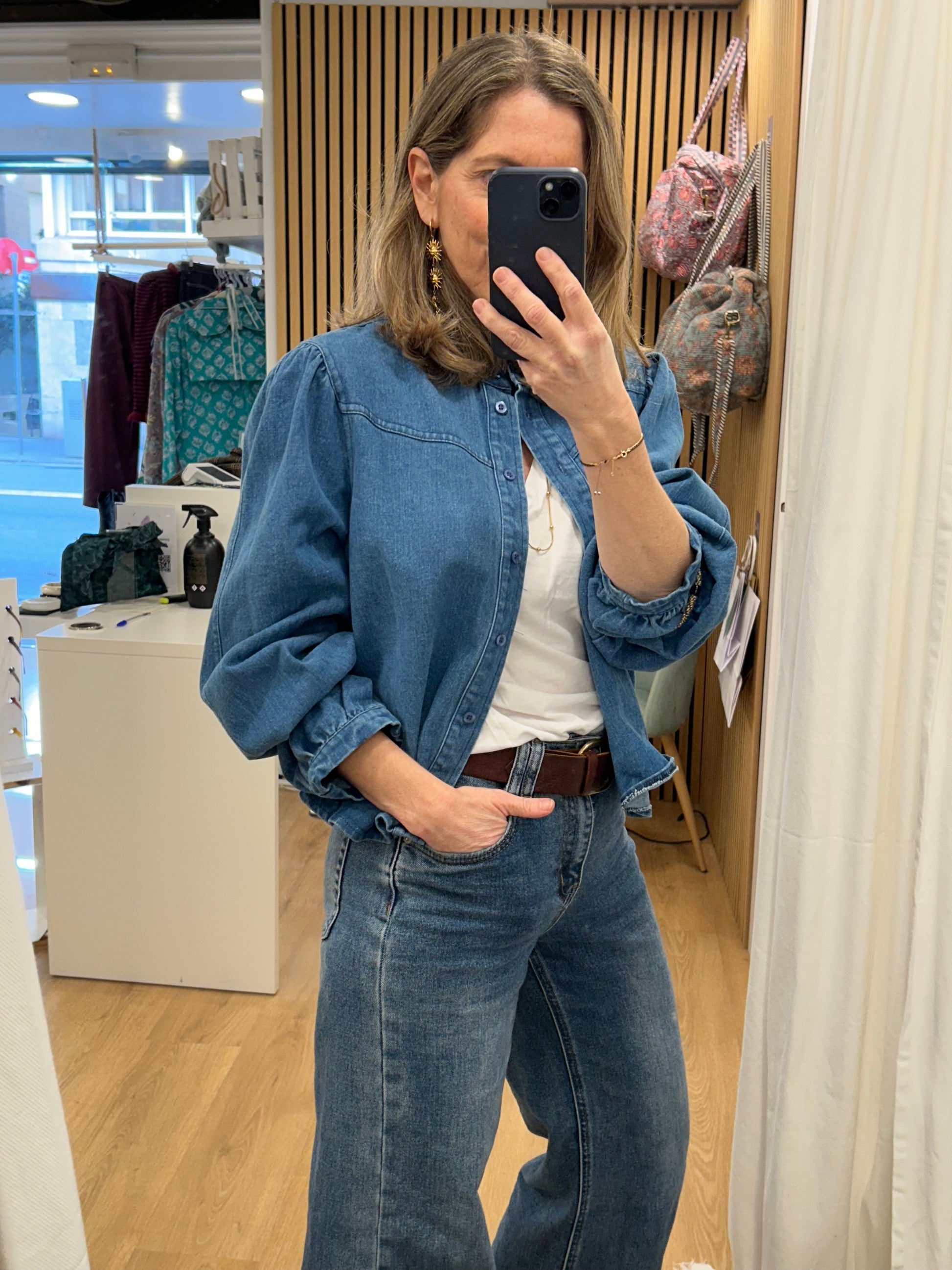 Camisa, Sobre Camisa en Denim. Con manga abullonada que la hace muy especial. Las camisa en denim son muy polivalentes y puedes utilizarlas con muchísimas prendas y sacarles mucho partido!